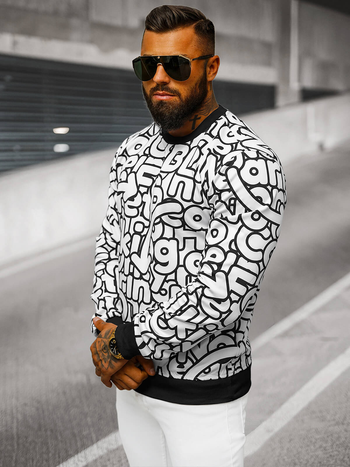 - Modelis (182 cm, 87 kg) valkā XL izmēru.
