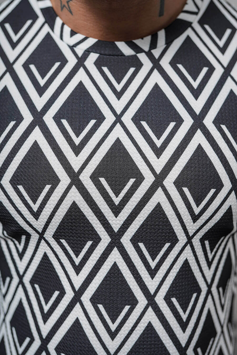 - Modelis (182 cm, 87 kg) a valkā XL izmēru.
