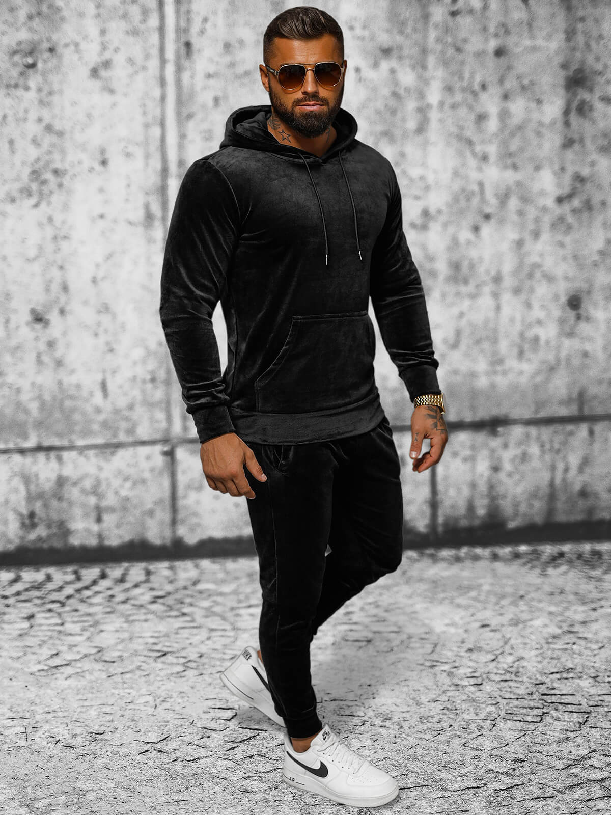 Vīriešu melns velūra treniņtērpa komplekts OZONEE JS/8C1171/3 - komforts un stils vienā