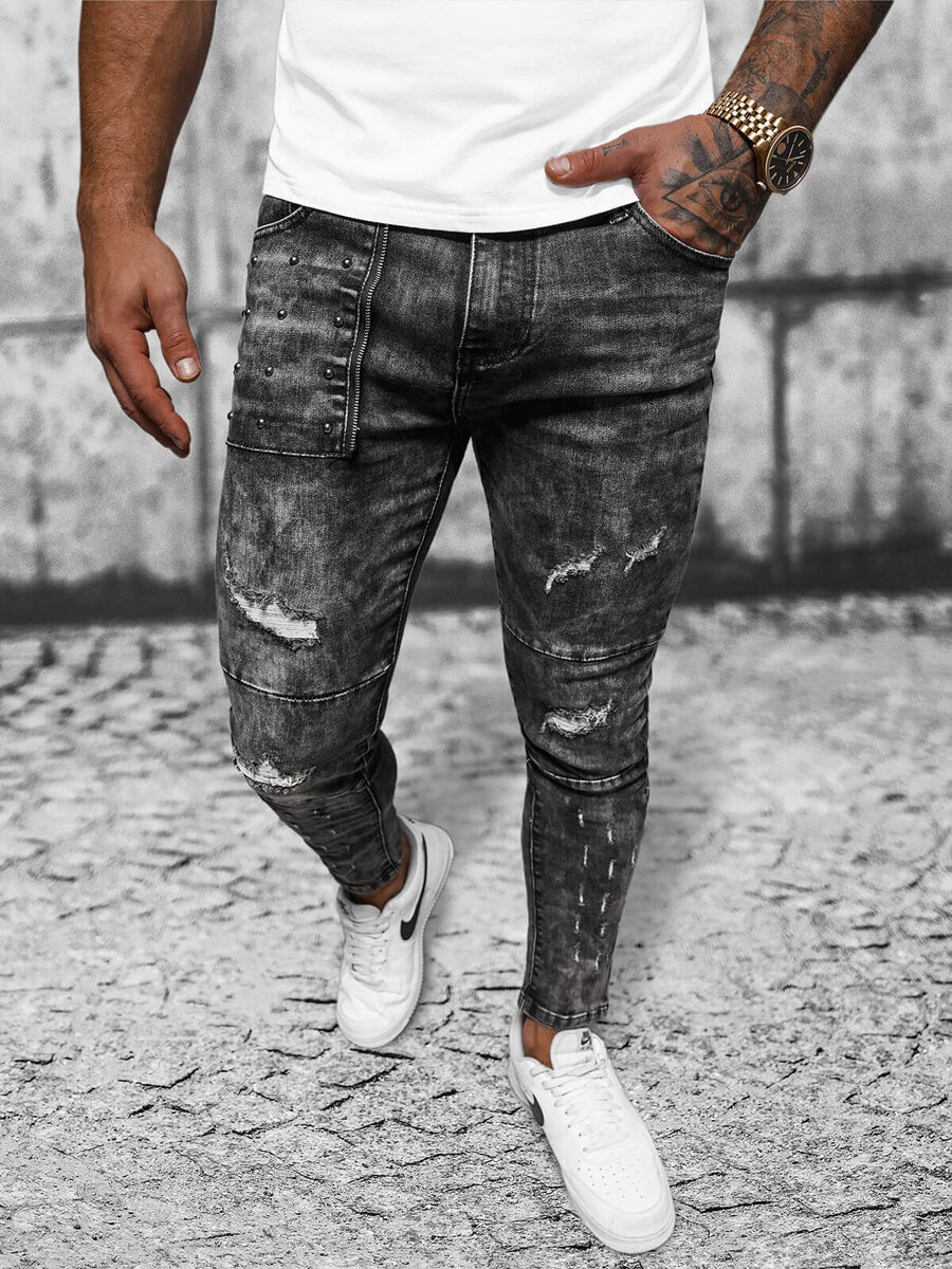 Izcils stils un komforts vienā - OZONEE vīriešu grafīta džinsa bikses DR/TF216