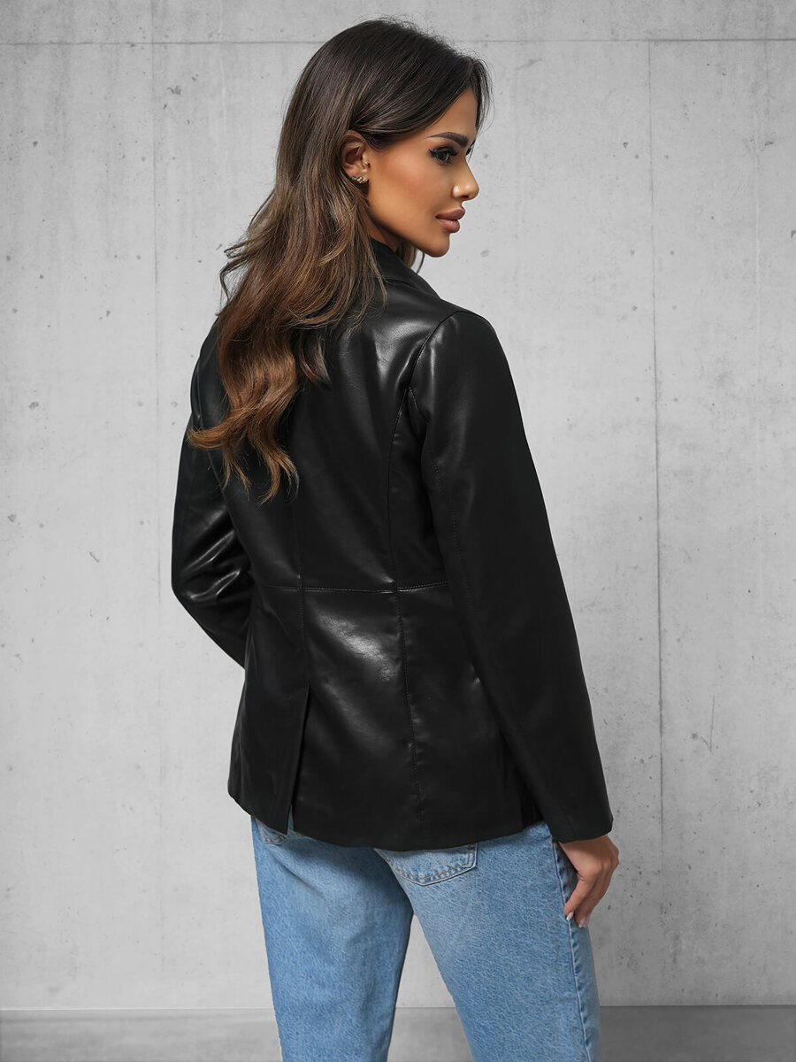 Sieviešu ādas jaka melna OZONEE JS/11Z8121 - elegance un komforts