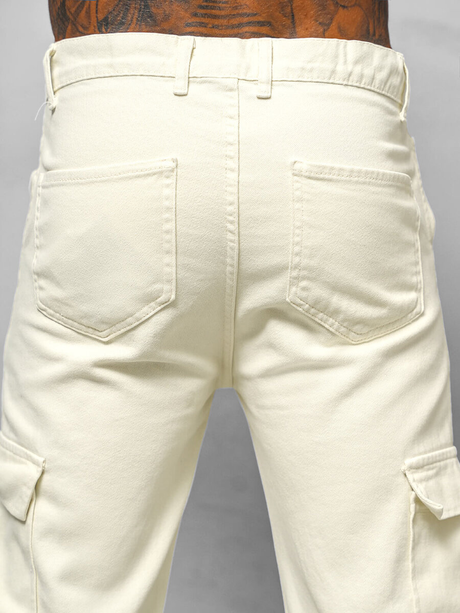 | Izmērs | Szerokość w pasie A | Szerokość nogawki od kroku B | Długość całkowita C | Długość nogawki wewnętrzna D | Szerokość na dole E |