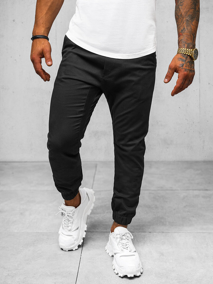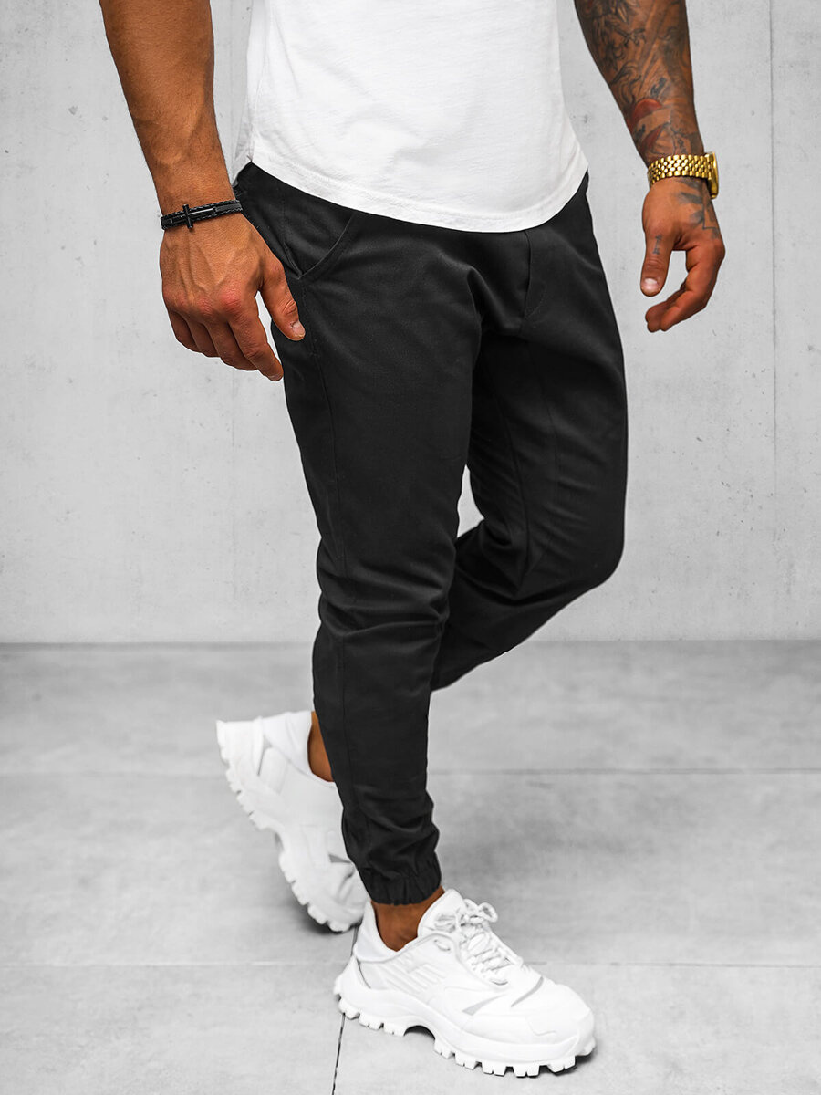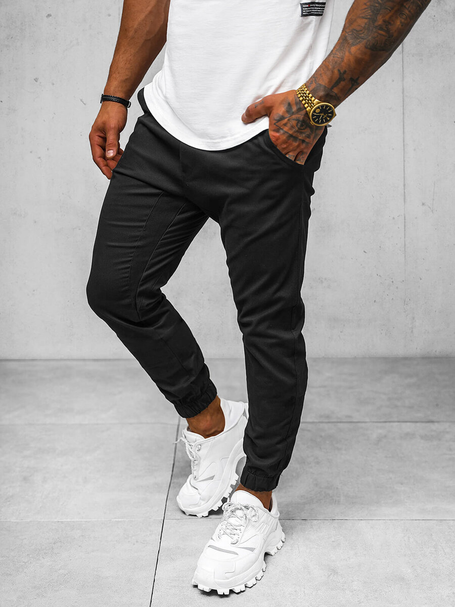 Vīriešu chino jogger bikses melni OZONEE O/399