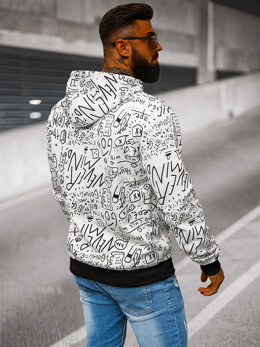 Vīriešu džemperis ar kapuci balta OZONEE JS/8B1182/1