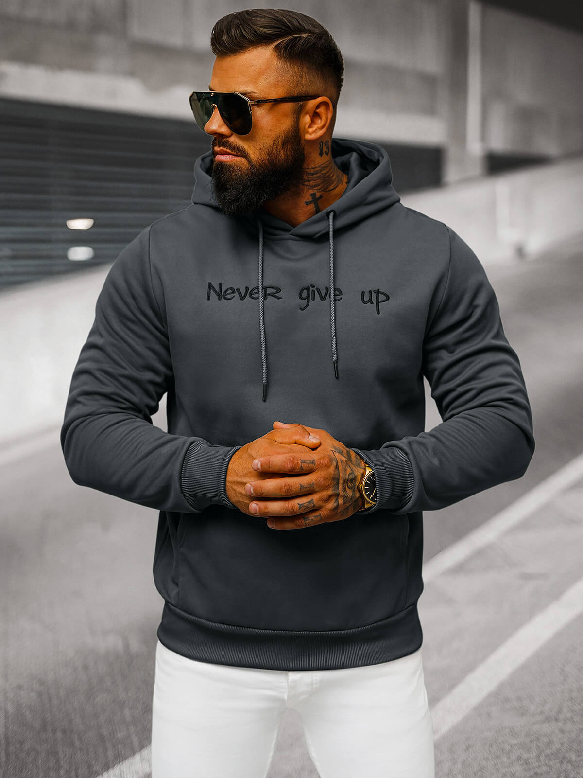Vīriešu džemperis ar kapuci grafīta OZONEE JS/27B6512/5
