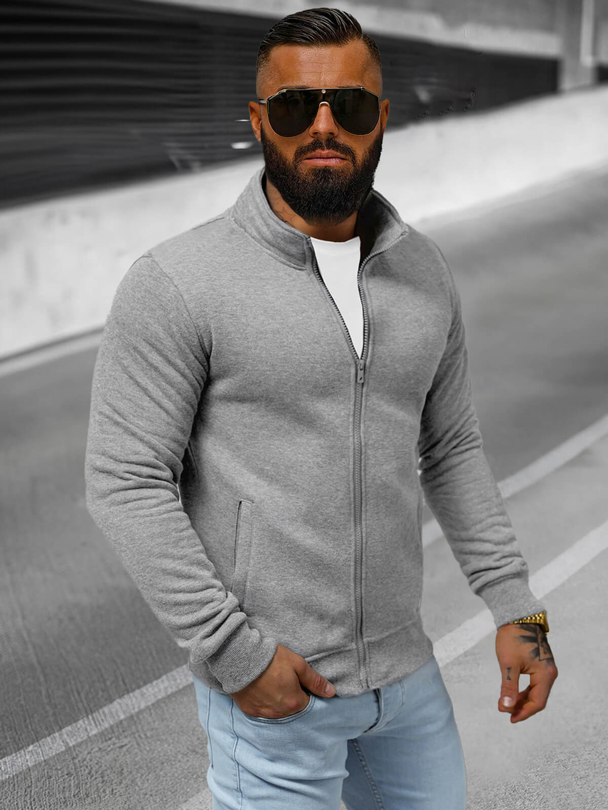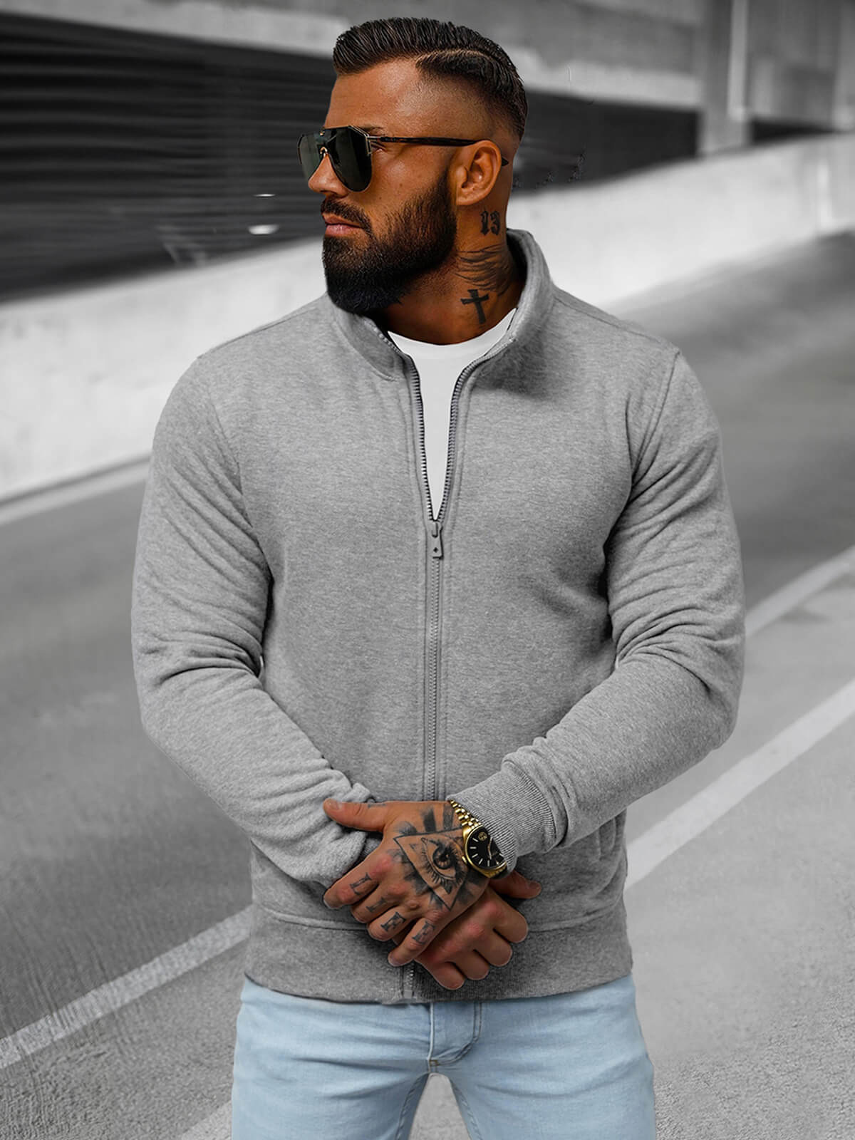 Vīriešu džemperis ar rāvējslēdzēju pelēks OZONEE JS/2002Z