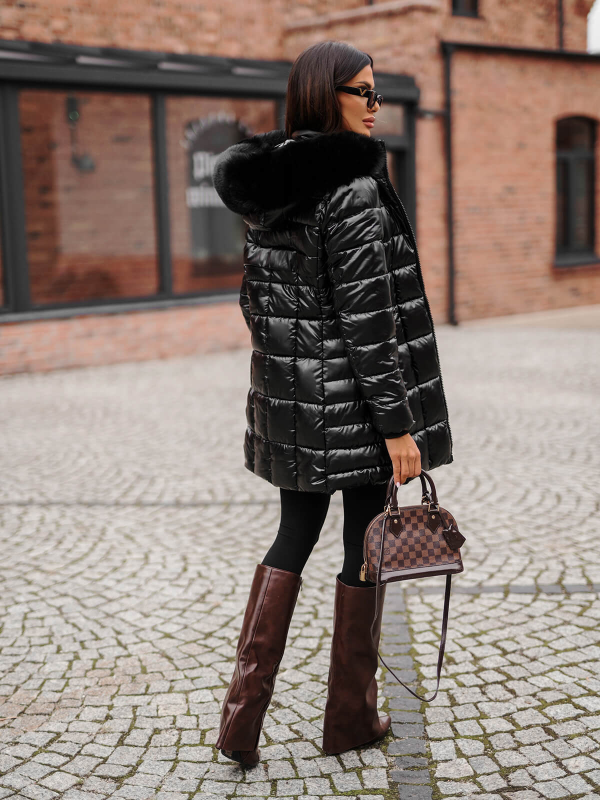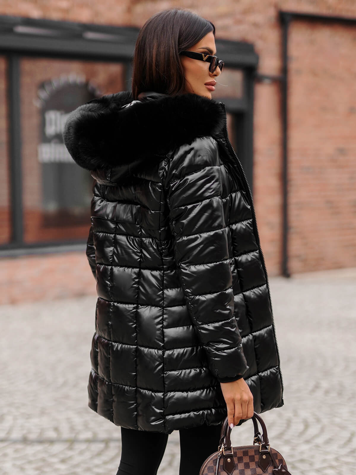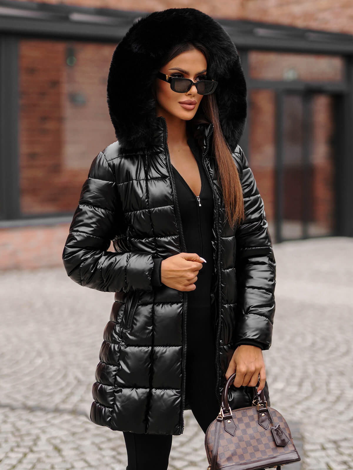 Stils un komforts vienā - Sieviešu ziemas garā jaka ar kažokādu melna OZONEE JS/16M9120/392