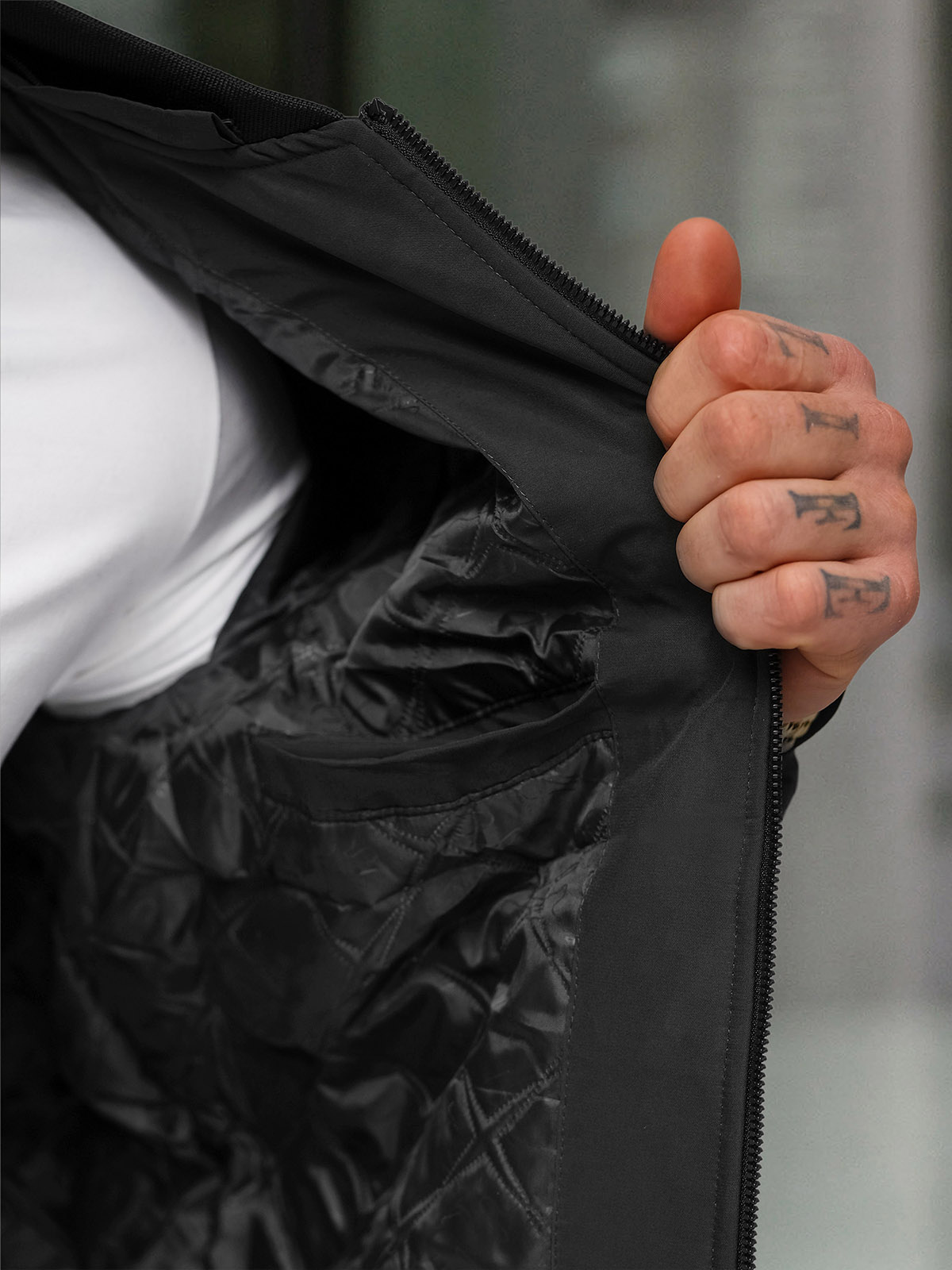 - Šai klasiskajai bomberjaketei ir rāvējslēdzējs priekšpusē un elastīgas aproces un apakšmala, kas nodrošina ideālu piegulumu