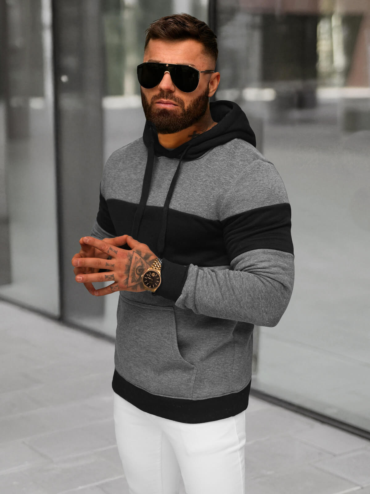Vīriešu džemperis ar kapuci grafīta OZONEE JS/8B1313/5
