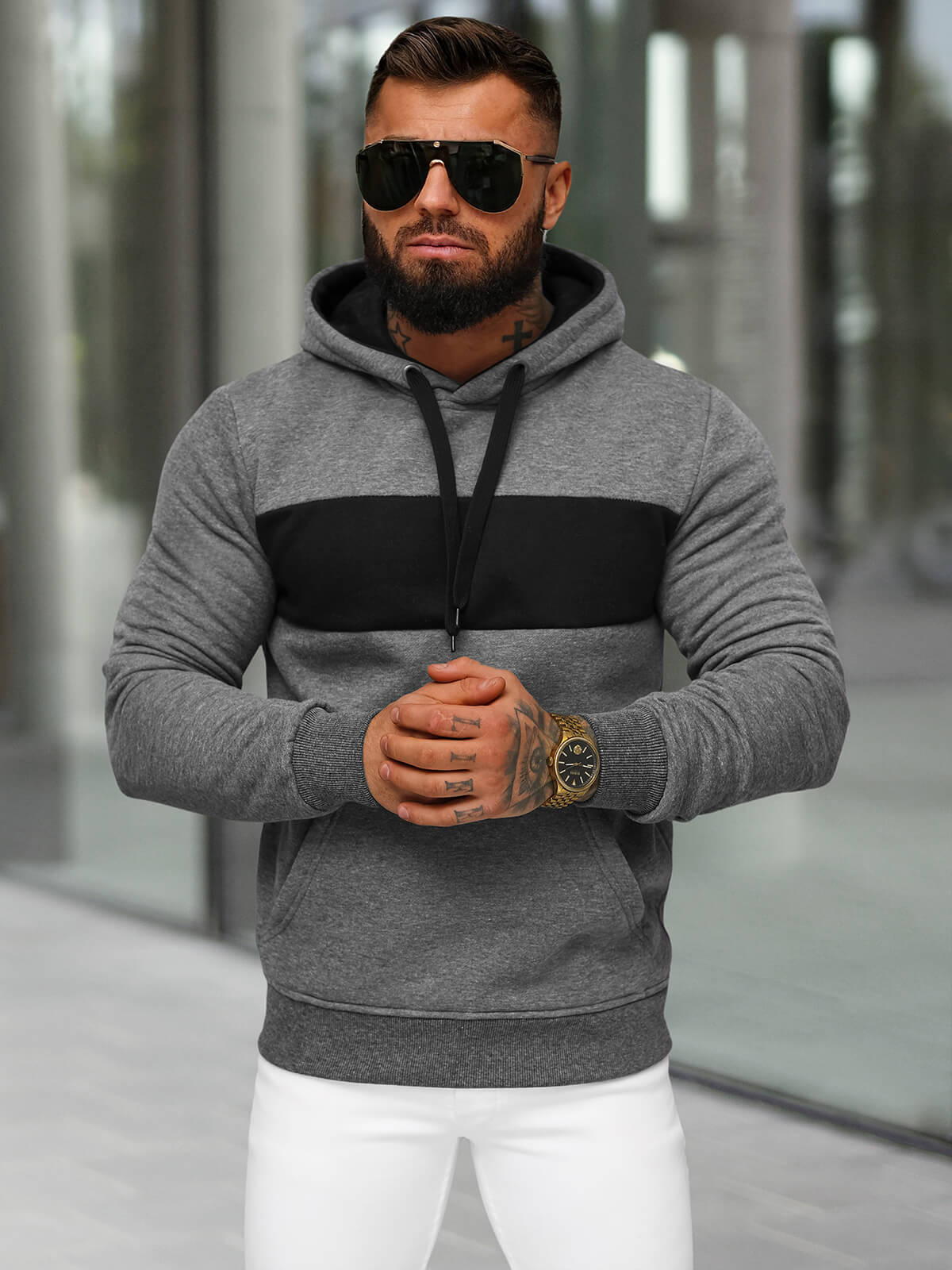 Vīriešu džemperis ar kapuci grafīta OZONEE JS/8B1315/5