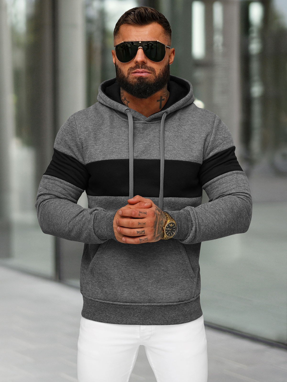 - Modelis (182 cm, 87 kg) valkā L izmēru.