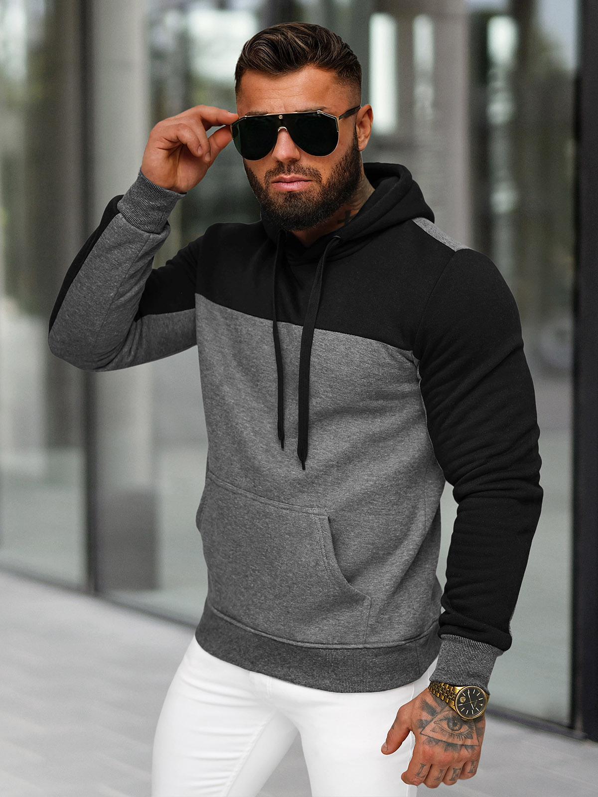 Vīriešu džemperis ar kapuci grafīta OZONEE JS/8B1307/5