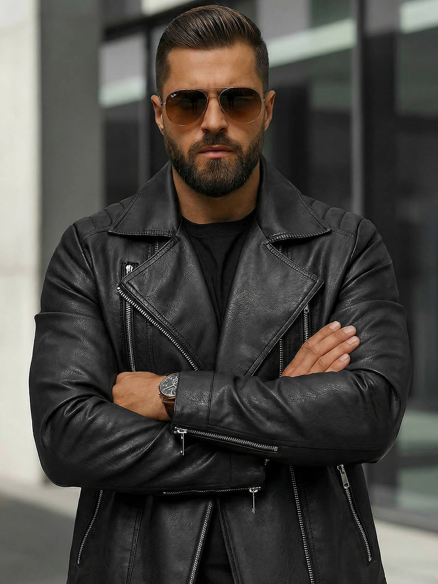 - Vīriešu jaka ar ādas imitāciju