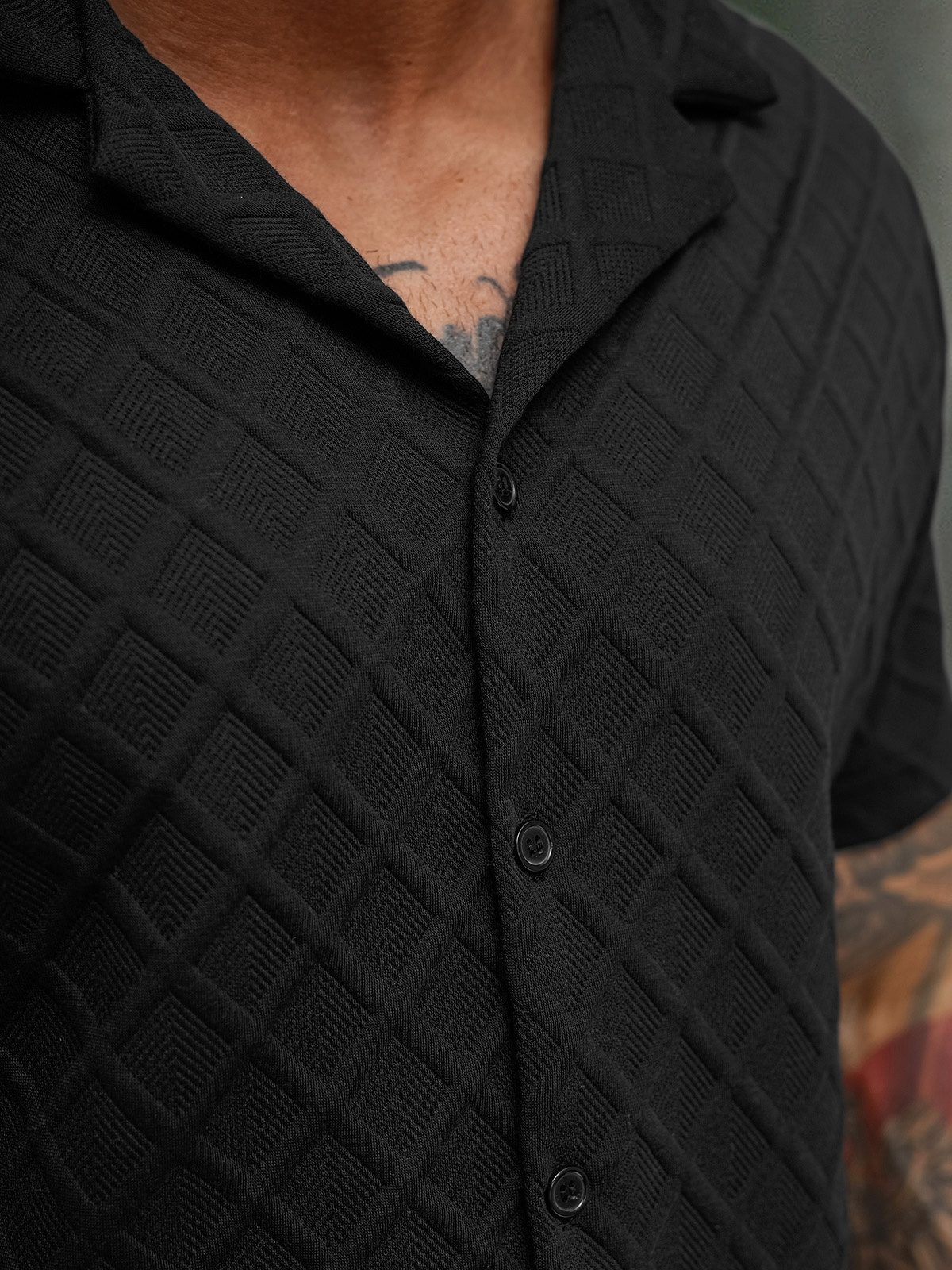 Vīriešu krekls ar īsām piedurknēm melns OZONEE O/B2257