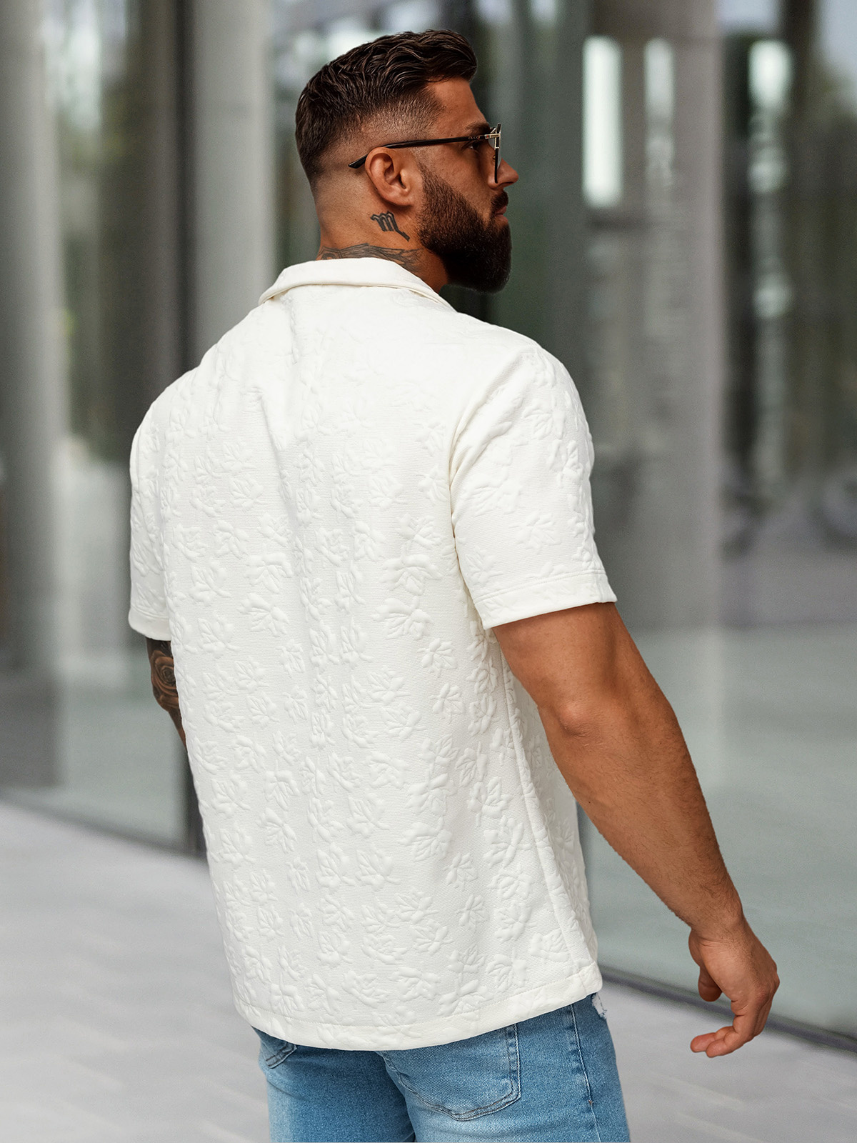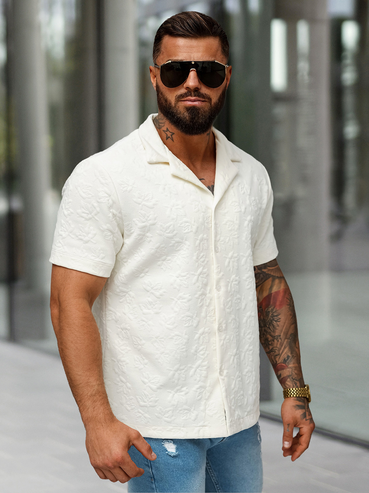 Vīriešu krekls ar īsām piedurknēm ecru OZONEE O/B2258