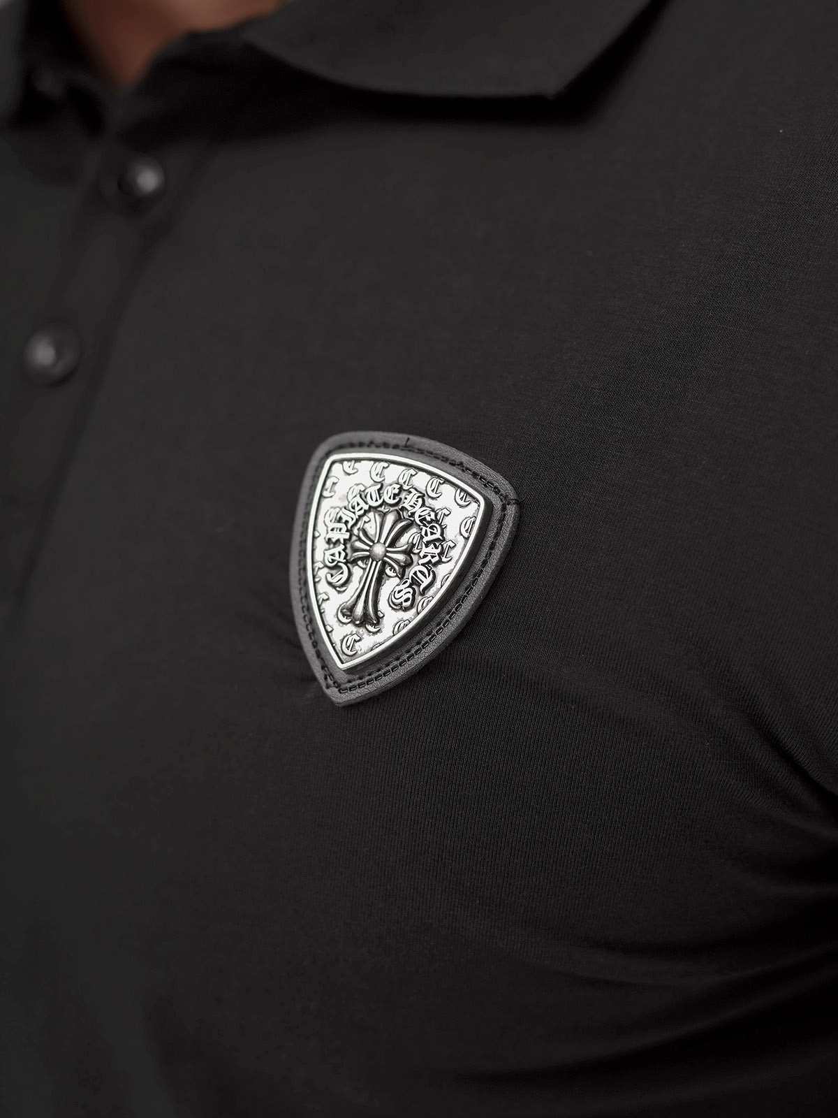 - Klasisks polo modelis ar Kent apkakli un trīs pogām piespraužamu aproci