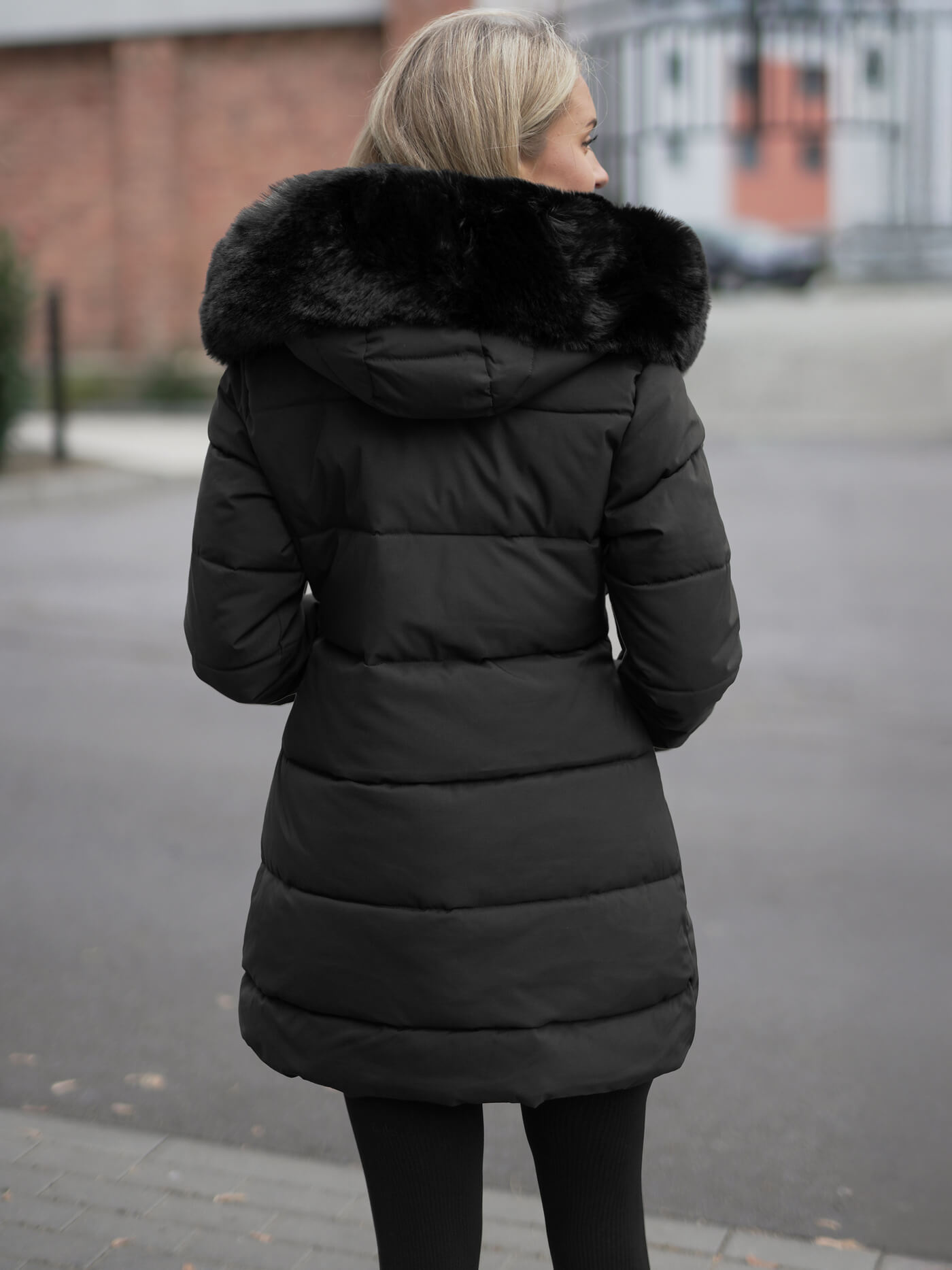 - Kapuce ar noņemamu mākslīgo kažoku