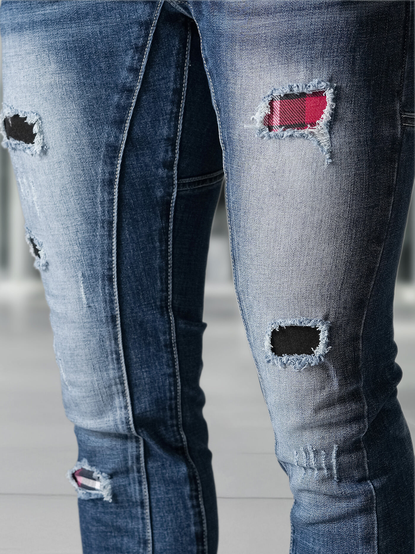 - Džinsiem ir grezni nodilušas vietas uz kājām, kas piešķir unikālu un stilīgu pieskārienu