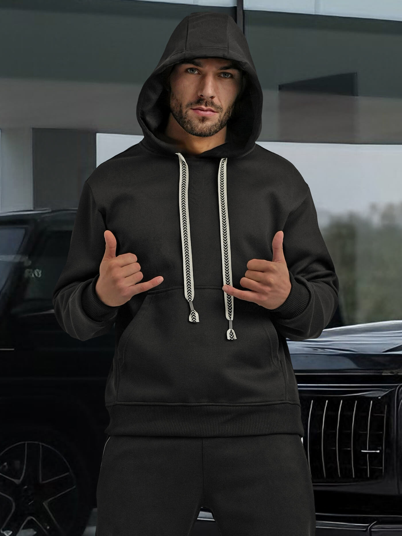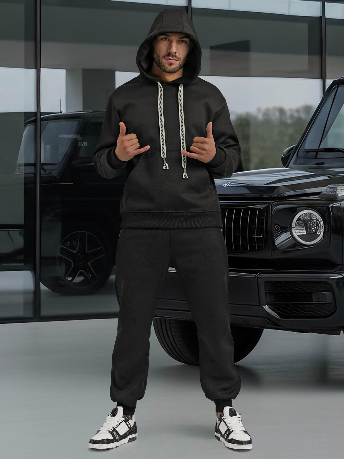 - Vīriešu sporta komplekts ar kapuci un biksēm