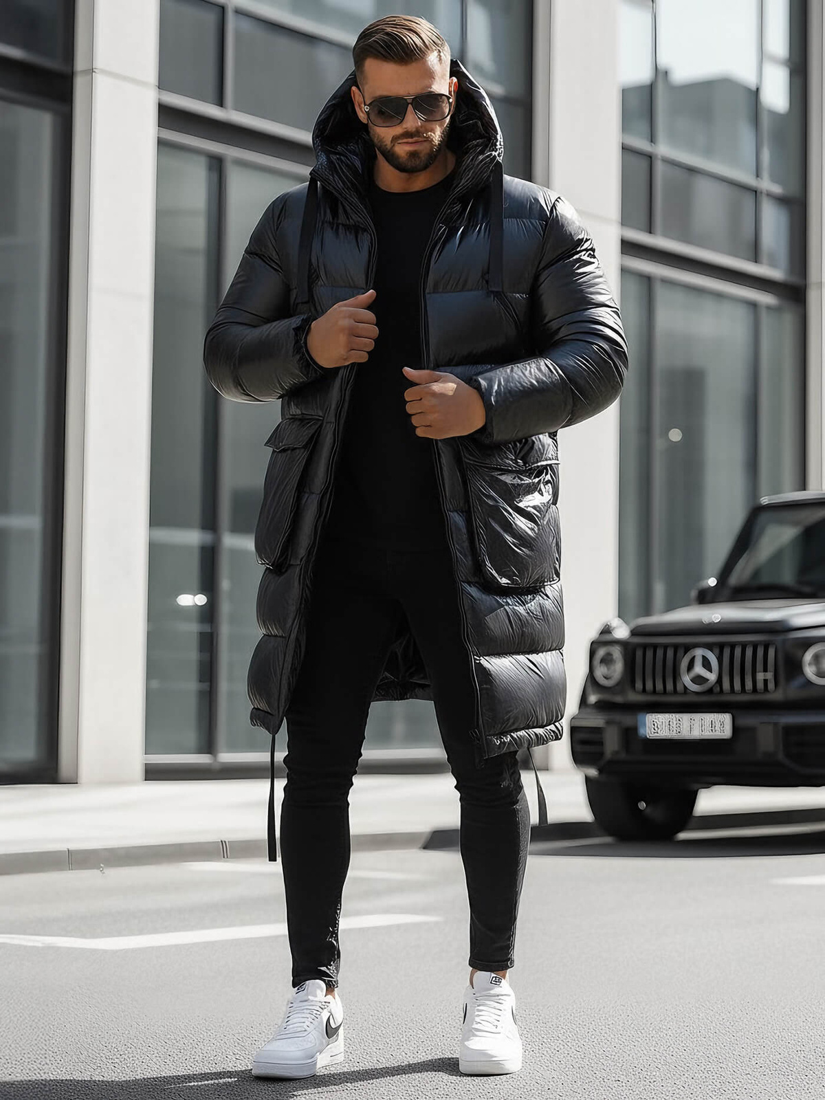 Modele ir 182 cm gara un sver 87 kg, valkā L izmēru. Šī jaka ir ideāli piemērota vīriešiem, kuri novērtē komfortu, stilu un augstas kvalitātes apstrādi. Lai arī kāds būtu gadījums, šī garā vīriešu jaka ne tikai nodrošinās jums aizsardzību pret aukstumu, bet arī papildu stila un pārliecības devu.