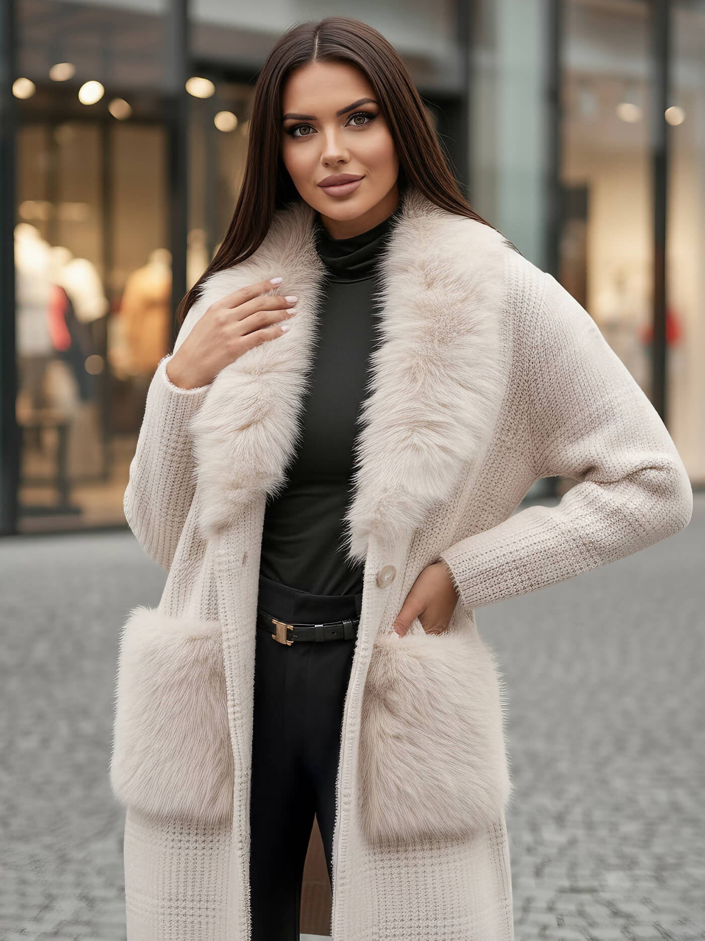 - Atloka apkakle ar siltu mākslīgo kažoku