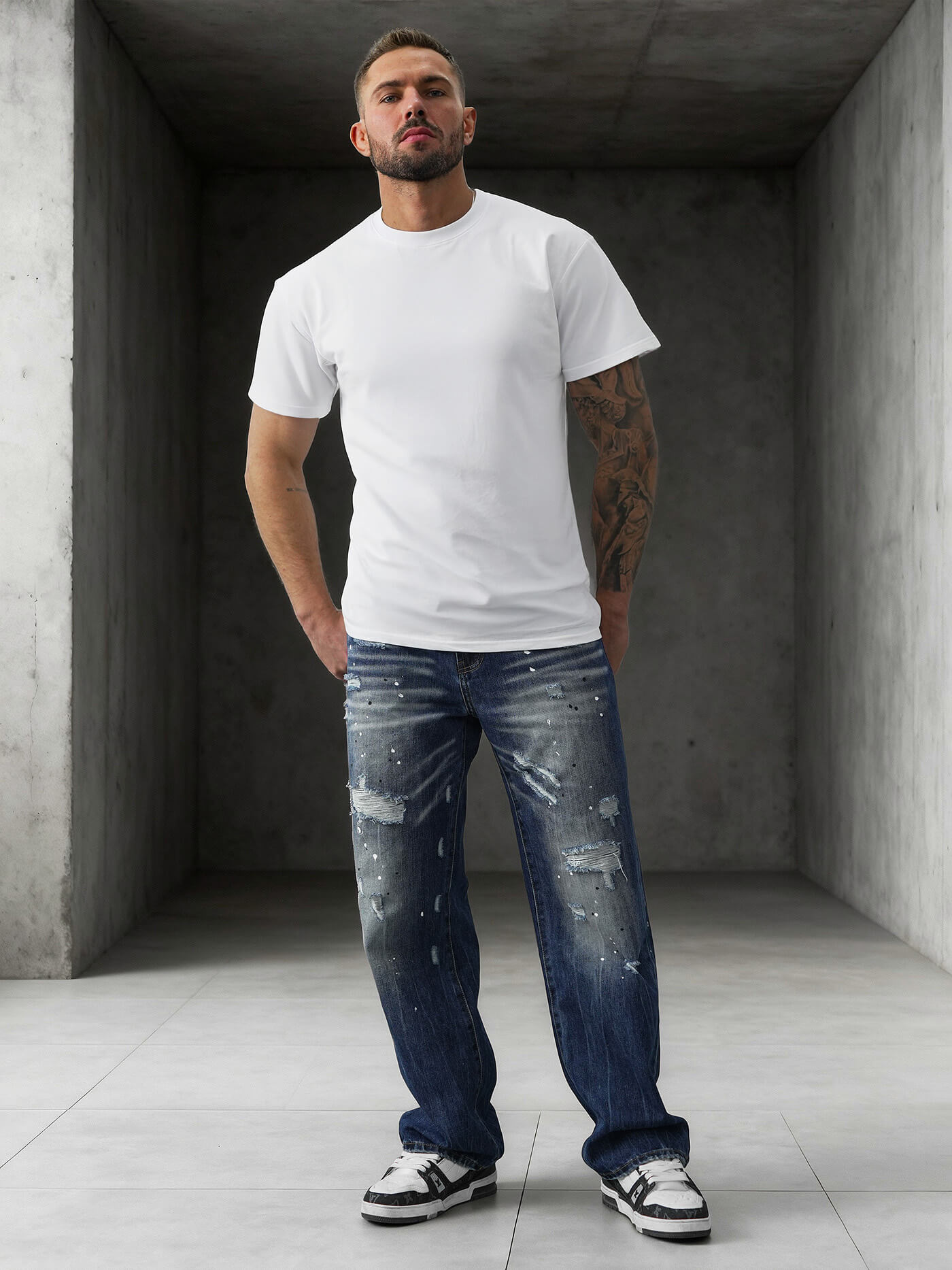 - Vīriešu džinsi ar platu staru