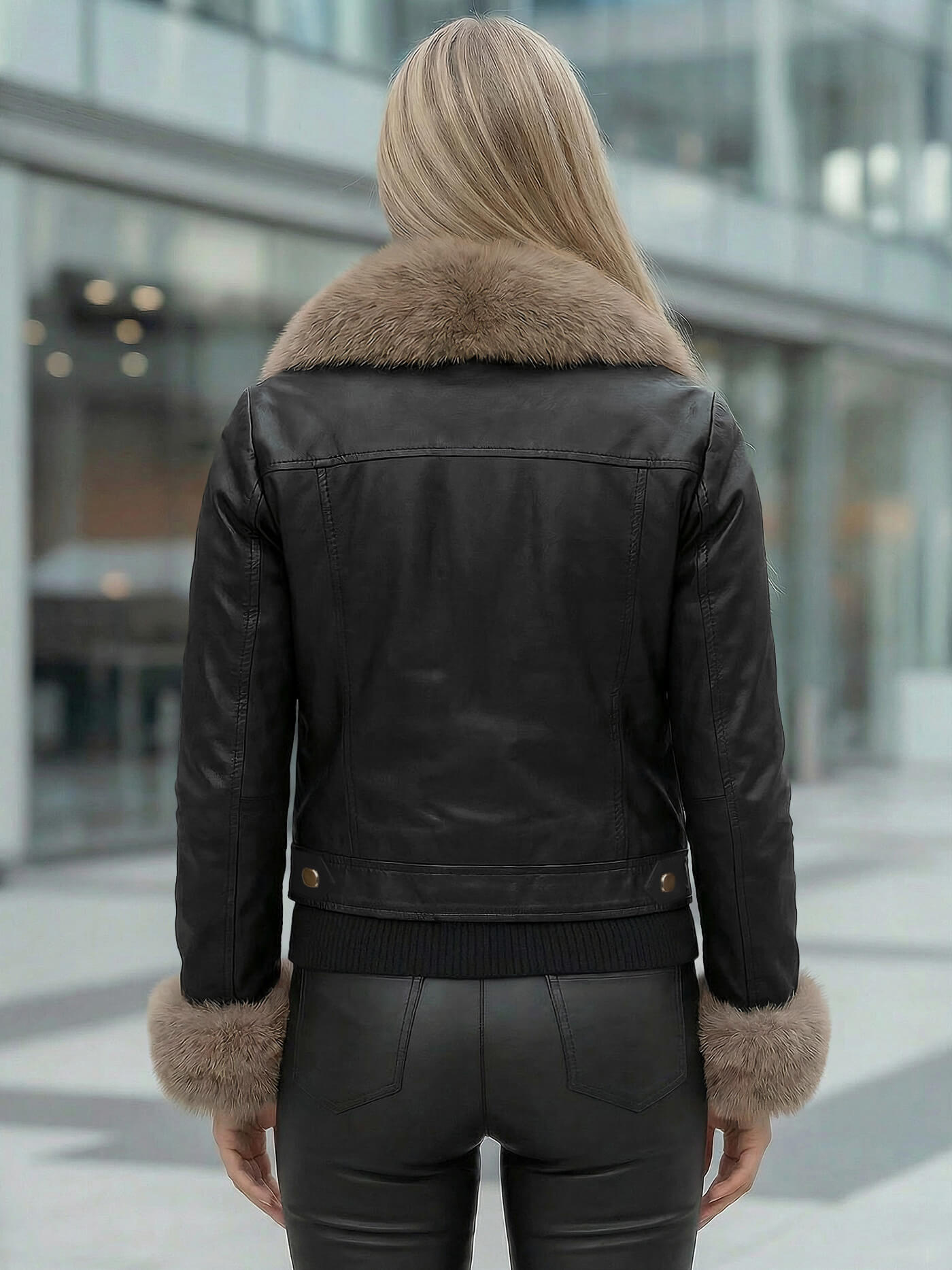 - Sieviešu jaka no ādas imitācijas materiāla