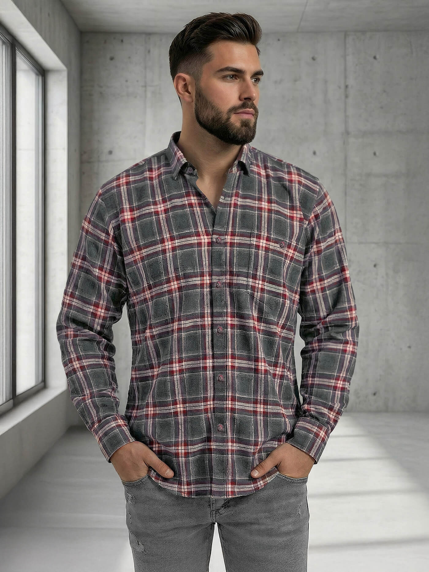 - Vīriešu ikdienas krekls ar rūtainu rakstu