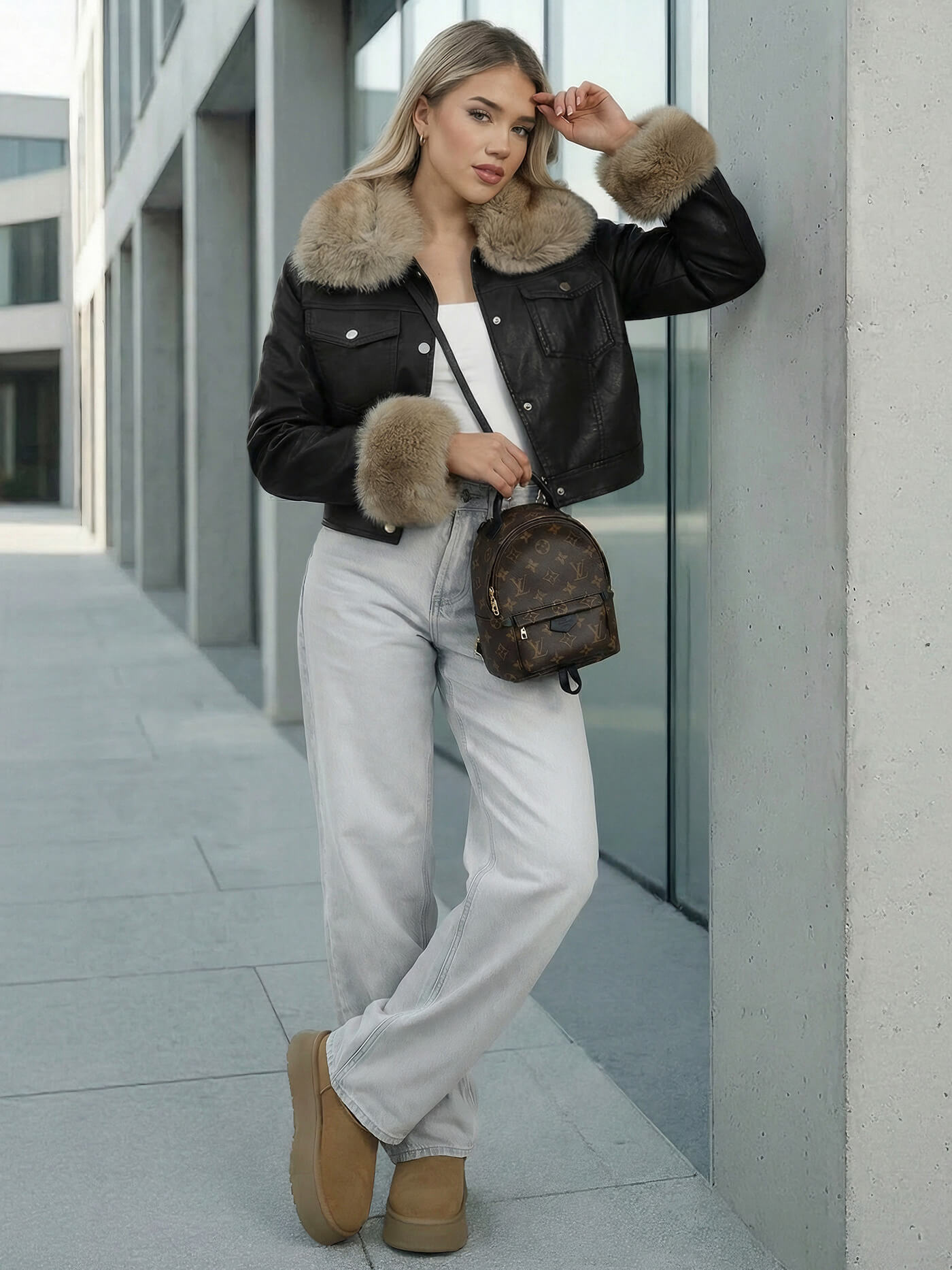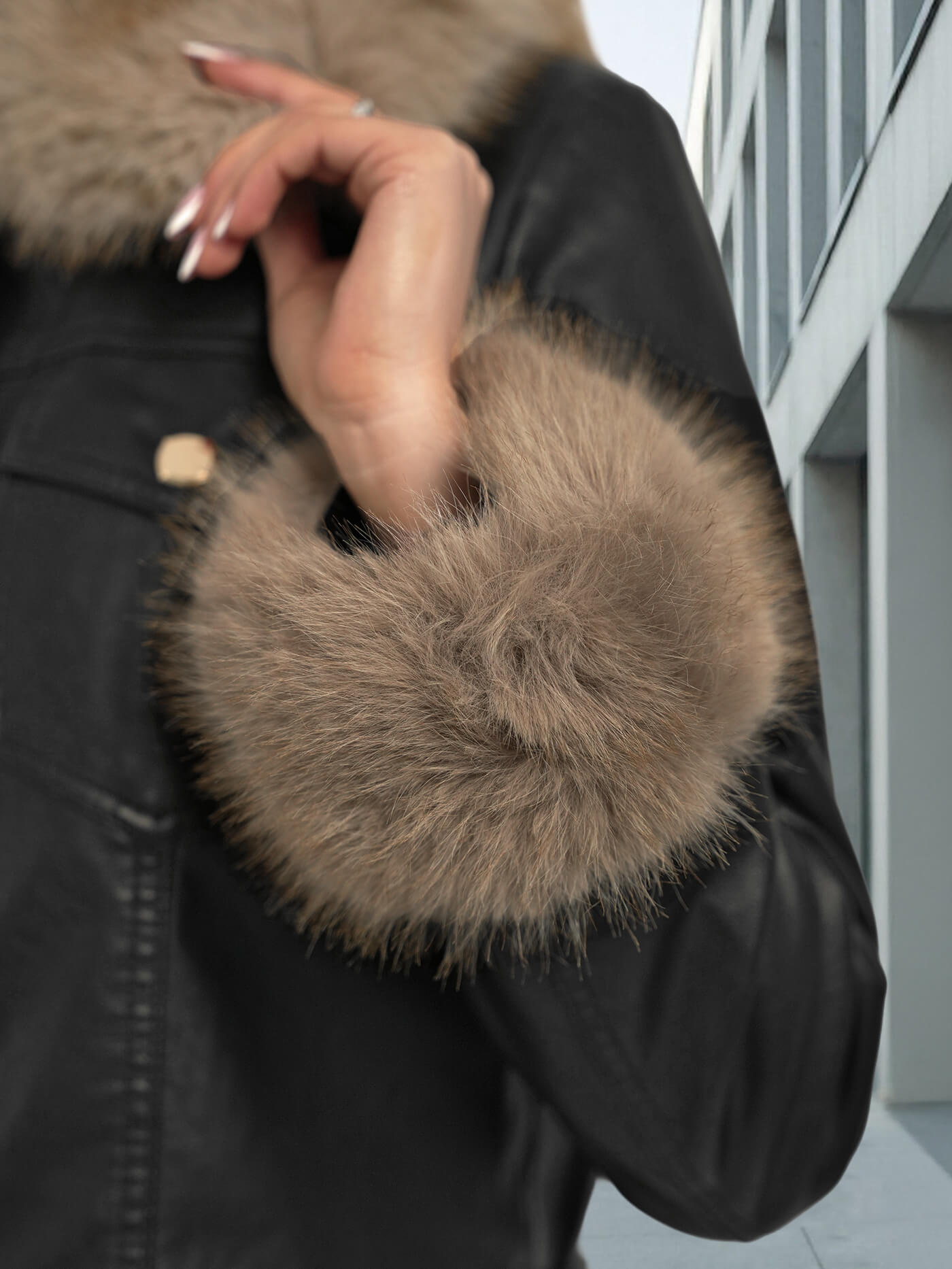 Sieviešu ādas jaka melni-smilšu OZONEE JS/61M8513/392B