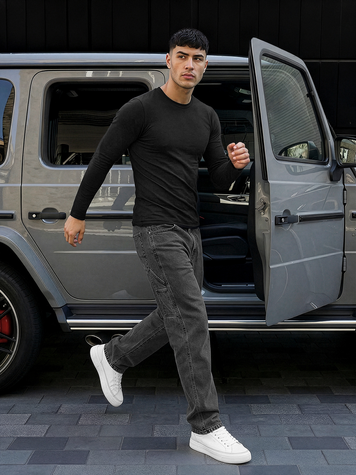 - Vīriešu džinsi ar platu staru