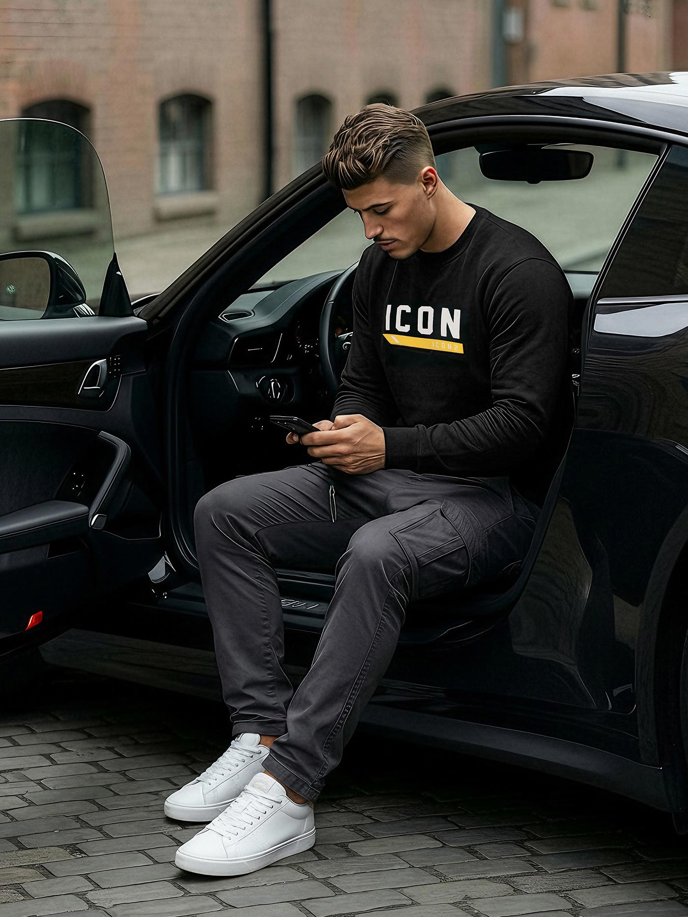 - Vīriešu džemperis ar apdruku