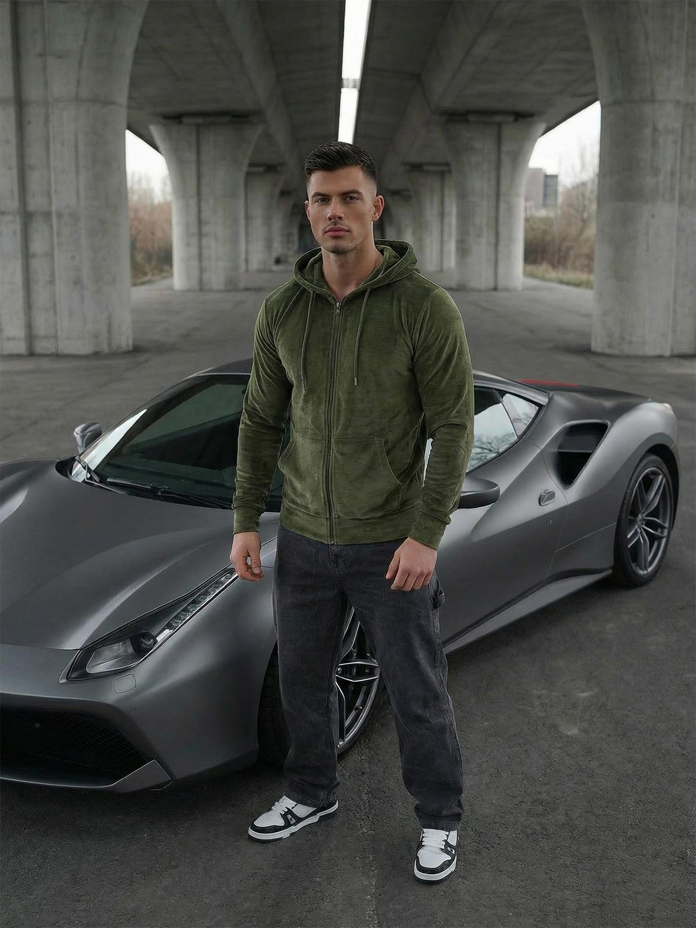 - Vīriešu velūra džemperis ar rāvējslēdzēju
