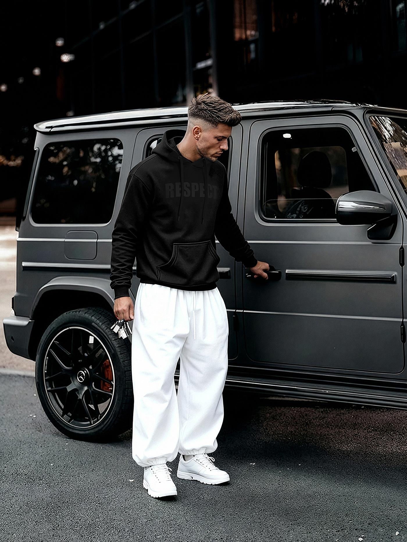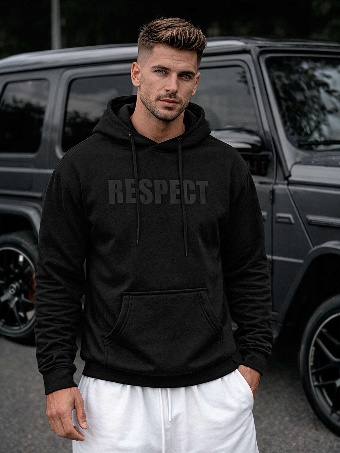 - Vīriešu džemperis ar kapuci
