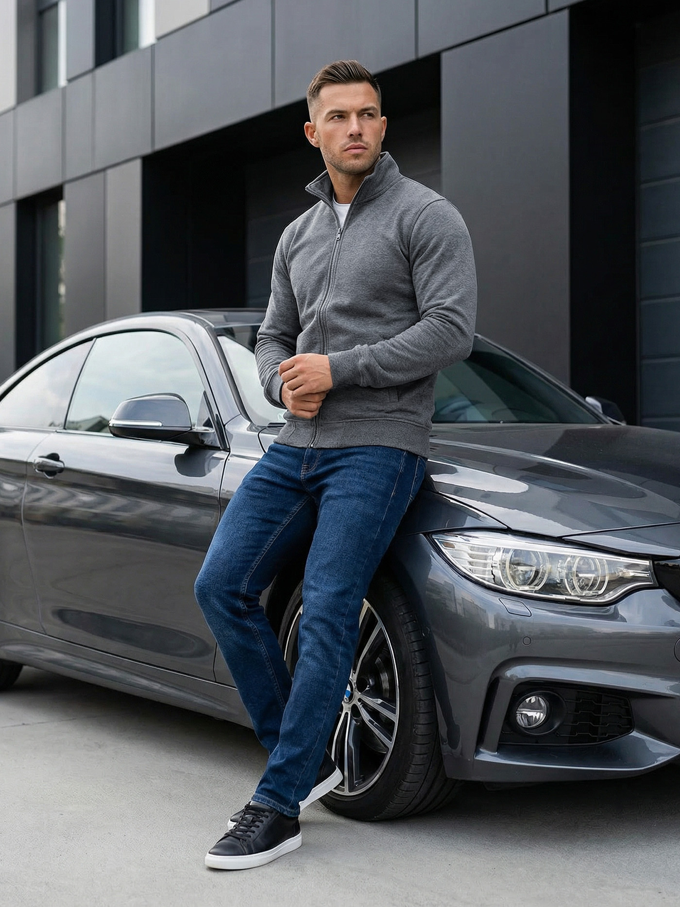 Vīriešu džemperis ar rāvējslēdzēju tumši pelēks OZONEE JS/2002Z