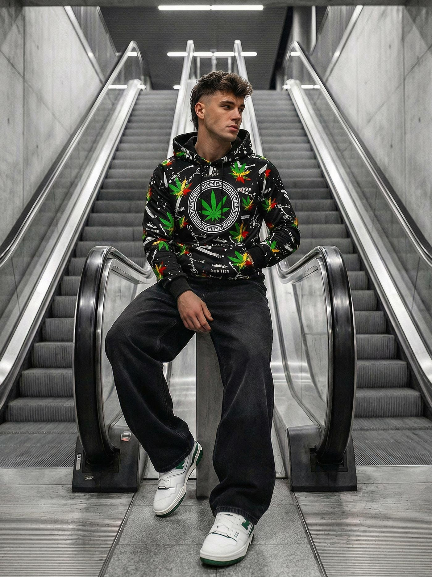 Vīriešu džemperis ar kapuci melns OZONEE O/B269Z