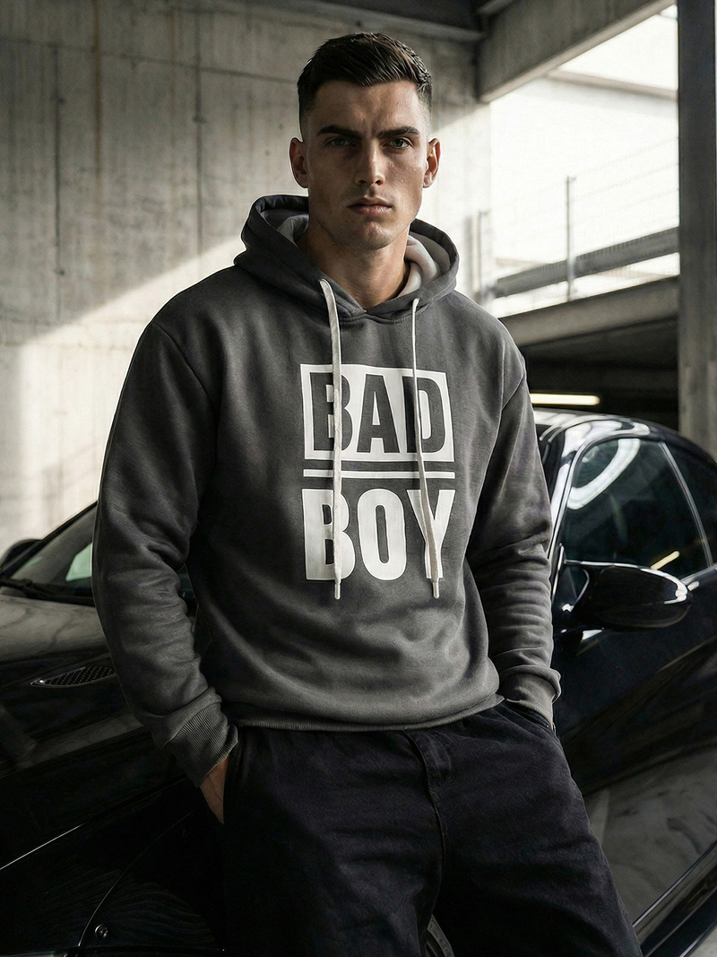 - Vīriešu džemperis ar kapuci, uzvelkams pāri galvai